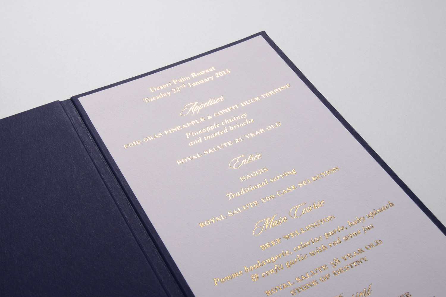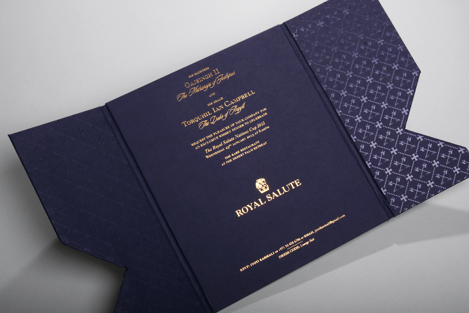 In addition to pitch side and event branding, we designed and crafted elegant invitations for the Duke and Maharaja sealed by hand, exquisite menus along with marketing materials for the three VIP dinners that were held in honour of the event.